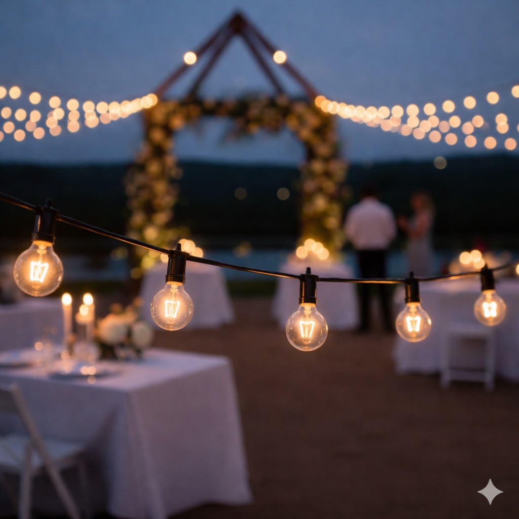 Apportez une touche lumineuse grâce à ce rideau élégant blanc chaud (4,4 m x 3 m) avec structure en acier réglable. Parfait en fond décoratif pour une borne à selfie ou pour sublimer la table d’honneur.