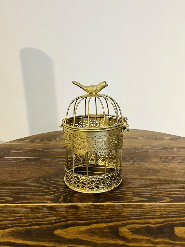 Centre de table cage à oiseaux en fer forgé or Dimensions : H20 cm / Diam11 cm