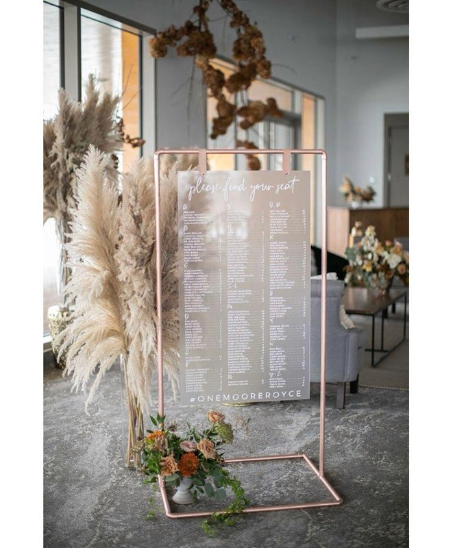 En acier dorée avec plaque en plexiglass Dimensions du panneau : H150 cm x L80 cm Dimensions du plexiglas : H90 cm x L60 cm