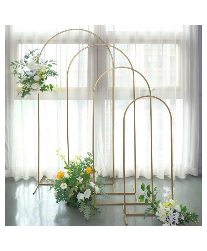Backdrop composé de 4 arches en acier couleur or Dimensions arche 1 : L100 cm x H200 cm Dimension arche 2 : L80,5 cm x H181 cm Dimension arche 3 : L65 cm x H151 cm Dimension arche 4 : L50,5 cm x H121 cm