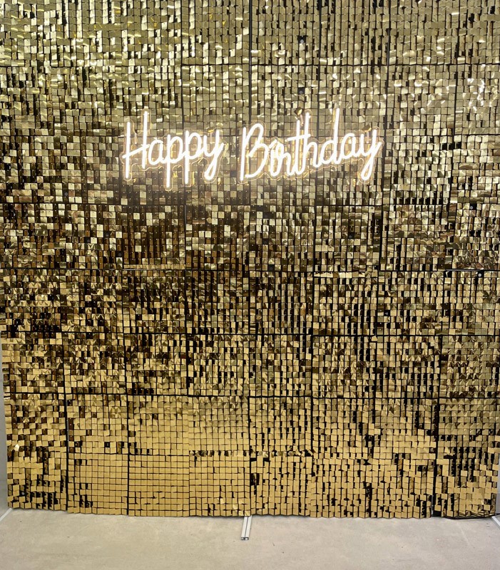 Backdrop or avec structure en acier réglable. Idéal pour mettre en backdrop pour votre borne à selfie Dimensions : H200 cm x L300 cm