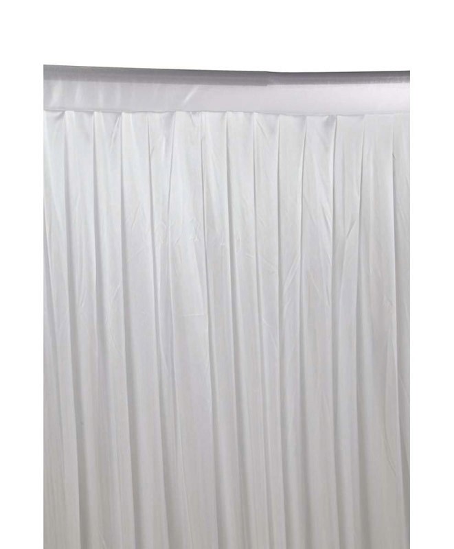 Rideau en tissu blanc avec structure acier réglable. Dimensions : hauteur 300 / largeur 300 cm.