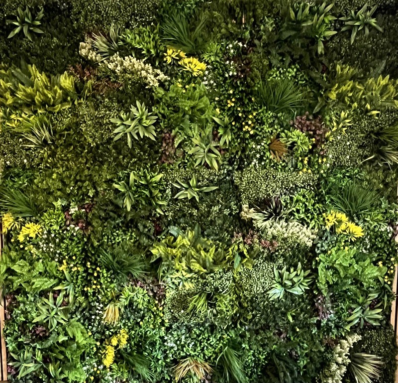 Plaque de végétation artificielle, Installation sur structure en acier Dimensions : H100cm x L100 cm