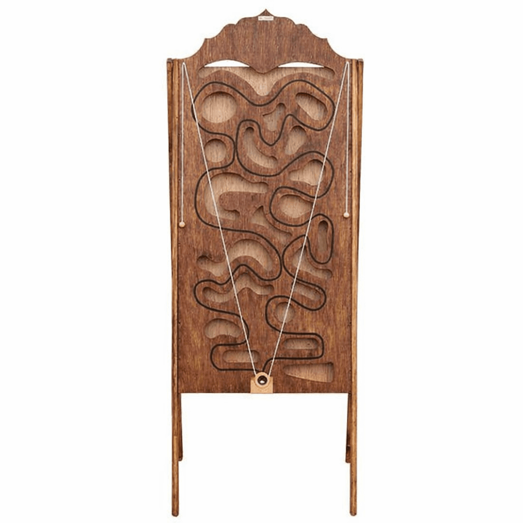 Suit le chemin avec la bille à l'aide des ficelles pour faire le tour de la planche sans tomber dans les trous Dimensions : H180 x L69 x l7 cm Fabrication Française 🇫🇷